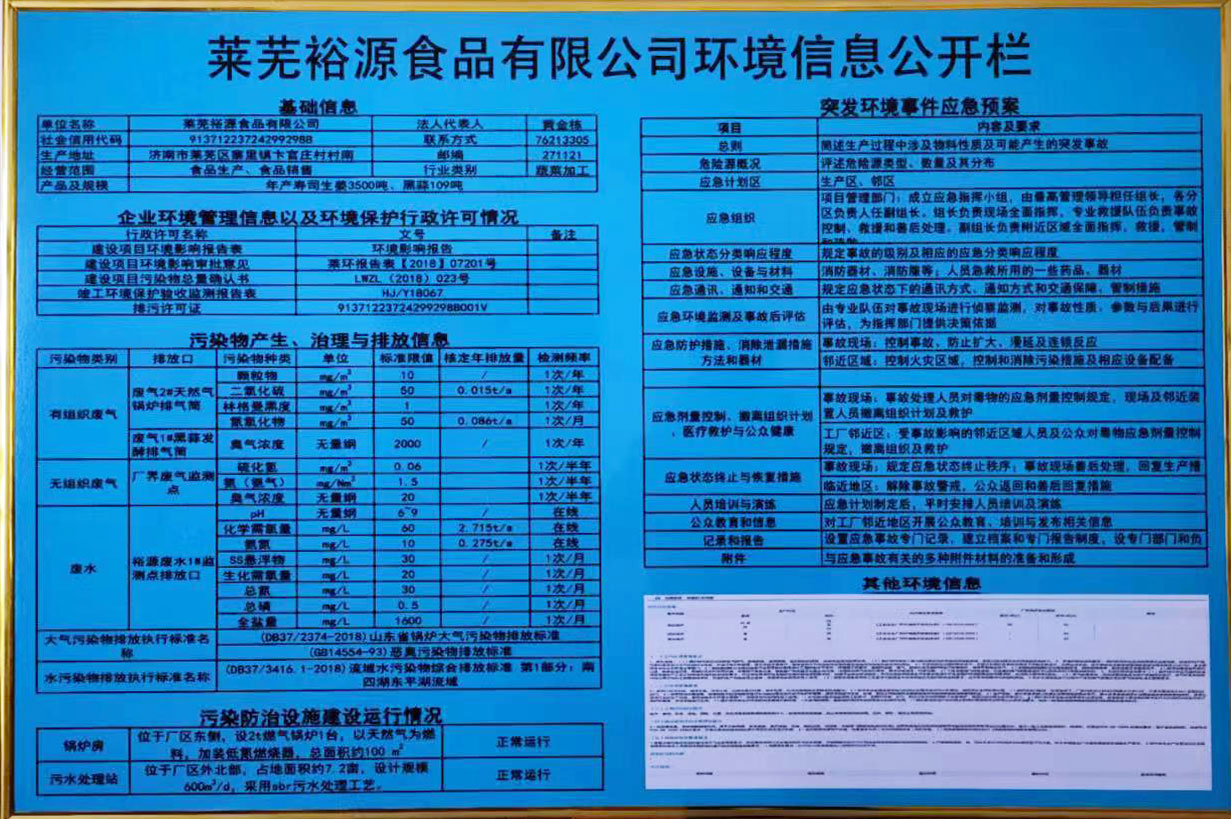 萊蕪裕源食品有限公司環(huán)境信息公開欄